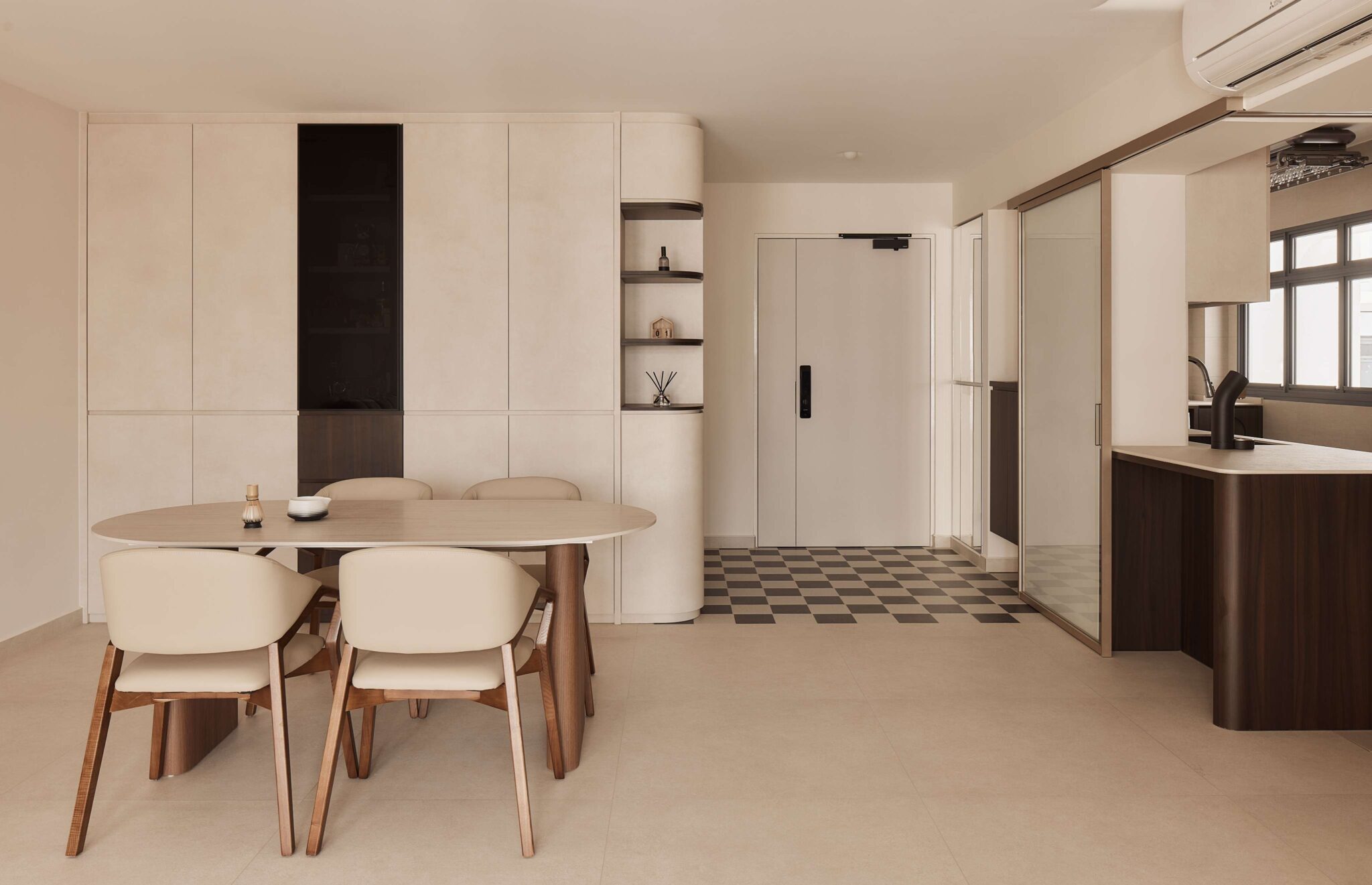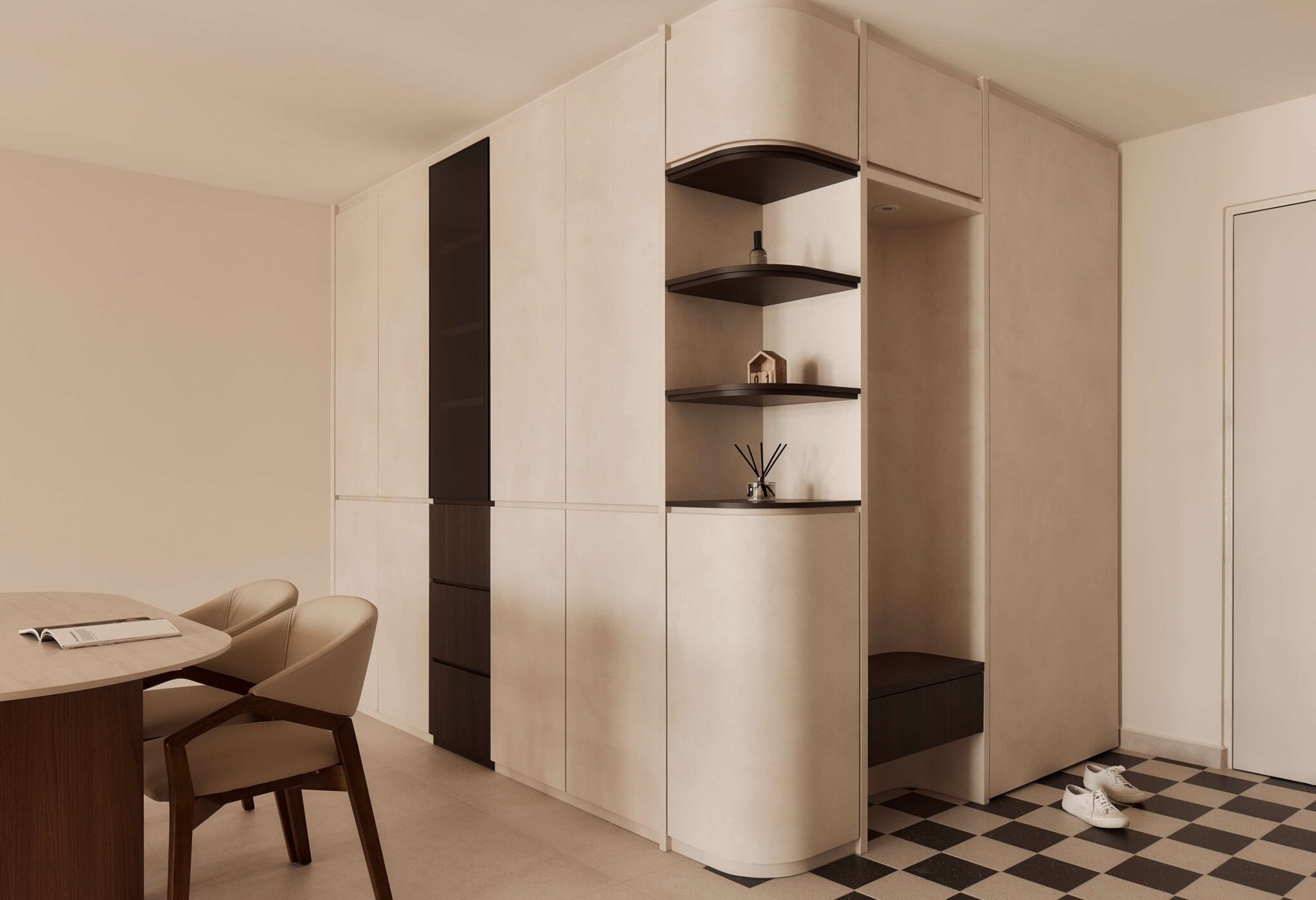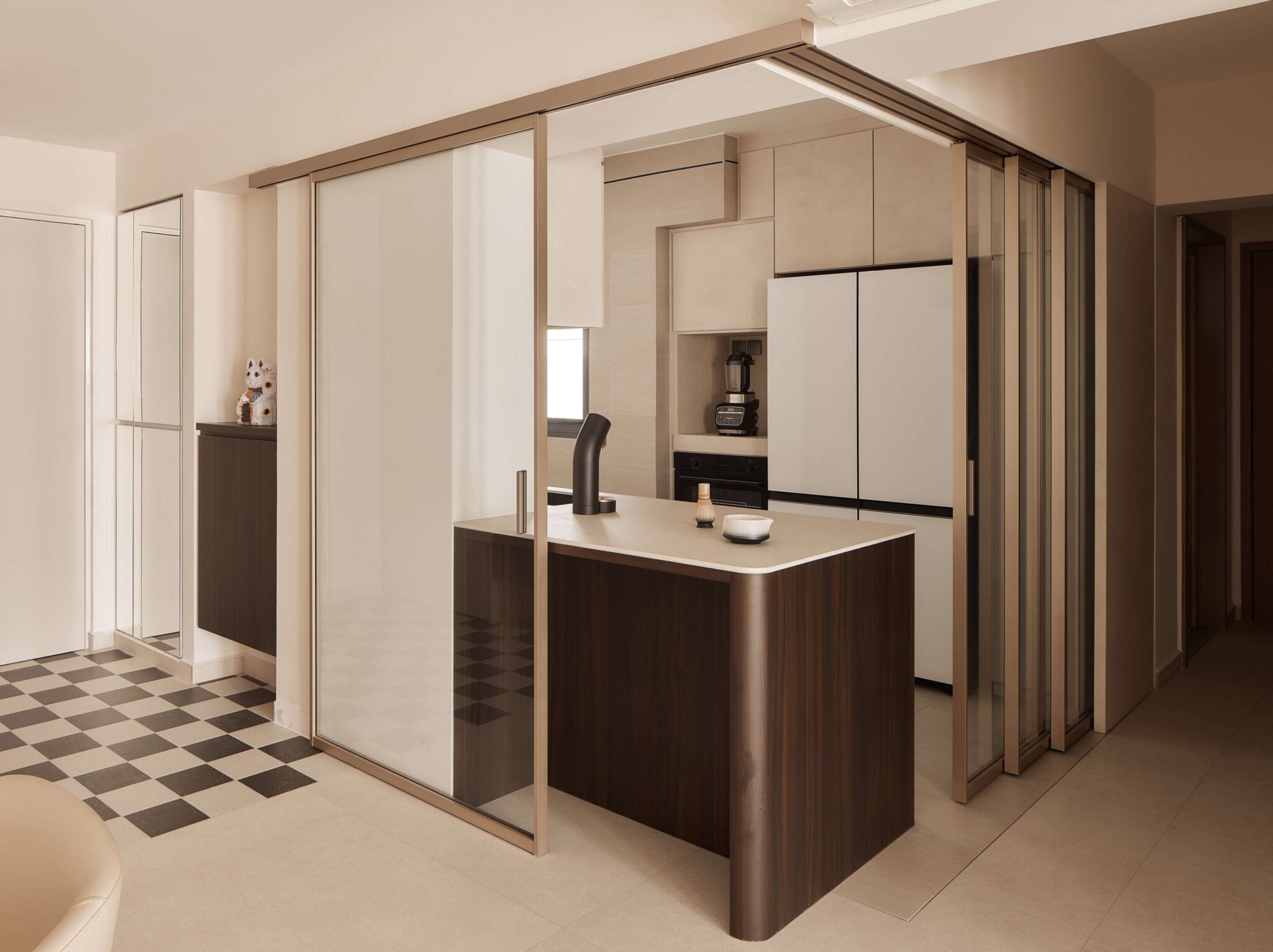 - Checkered foyer tiles