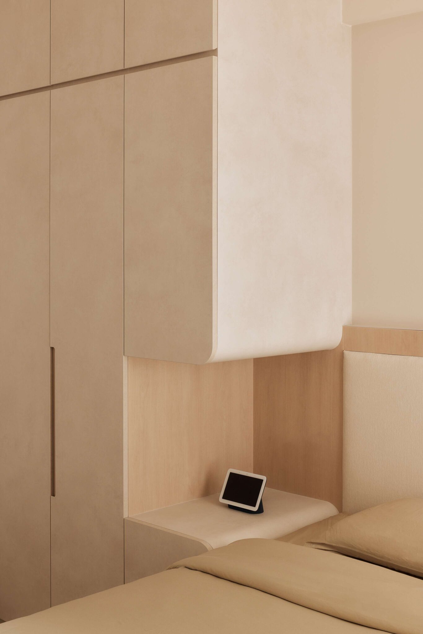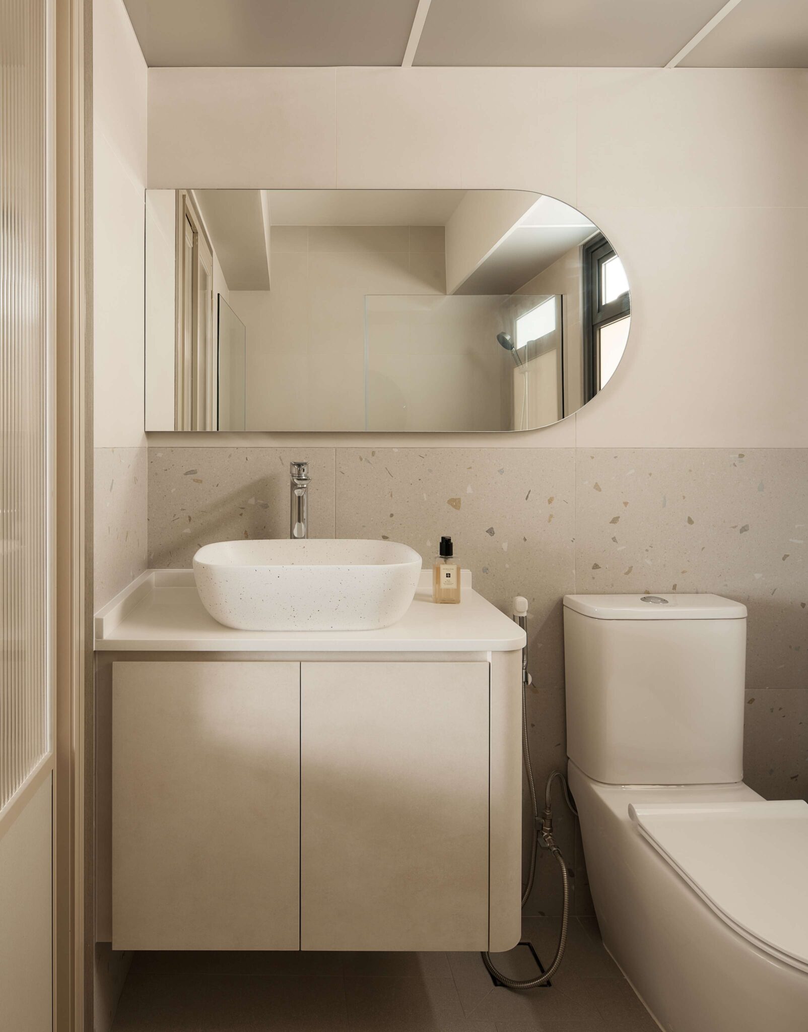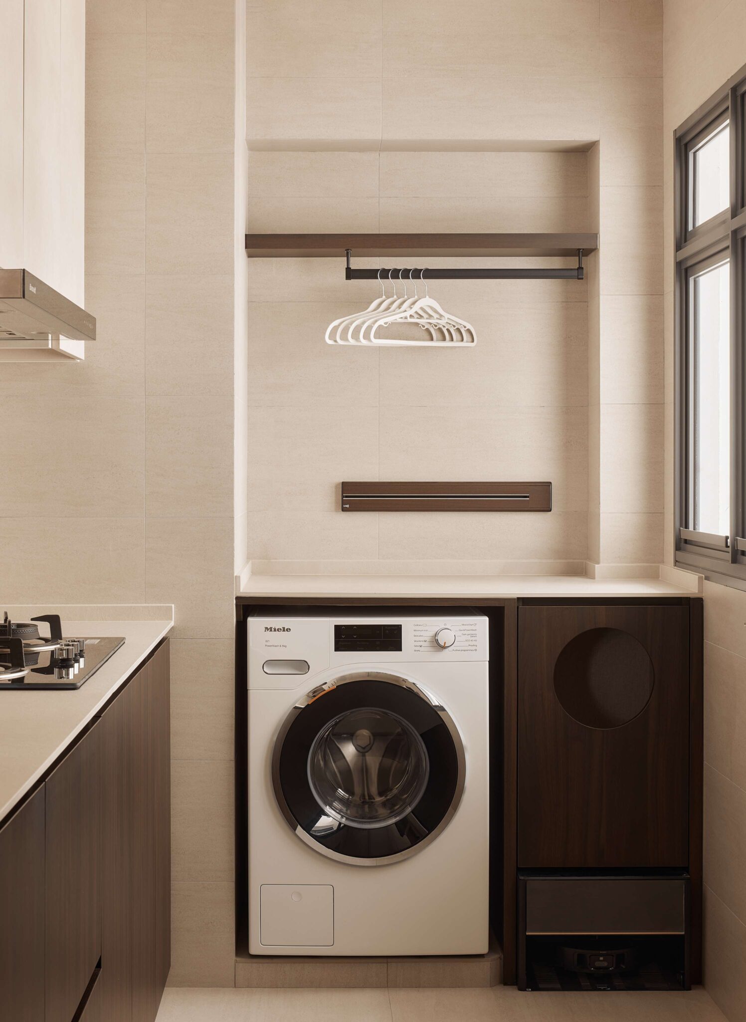 - Circle cut out for laundry basket area
