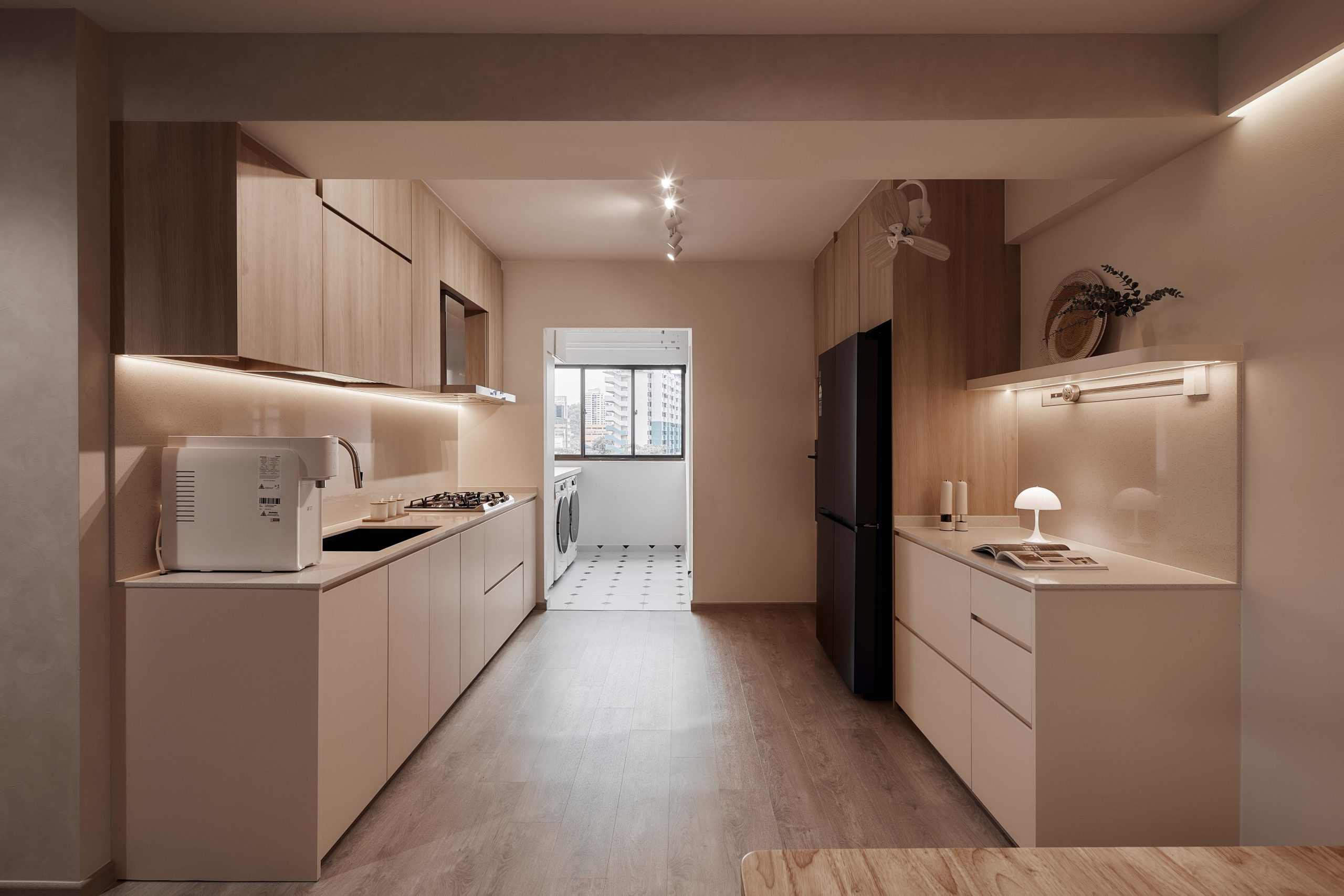 Limewash walls bring a subtle yet impactful texture, perfect for adding depth to smaller spaces. This paint finish creates a soft, chalky look that pairs beautifully with other natural materials like wood, stone, and linen. Limewash walls can transform a standard BTO kitchen or condo living room into a serene space with unique character, without overwhelming the room. Combined with natural, imperfect materials, limewash walls help create a harmonious environment that aligns with Singapore’s growing preference for aesthetics that prioritize simplicity and functionality.Tip: In Singapore’s humid climate, limewash walls also offer added durability and breathability, helping walls stay cooler and fresher in smaller BTO spaces that may lack natural airflow.